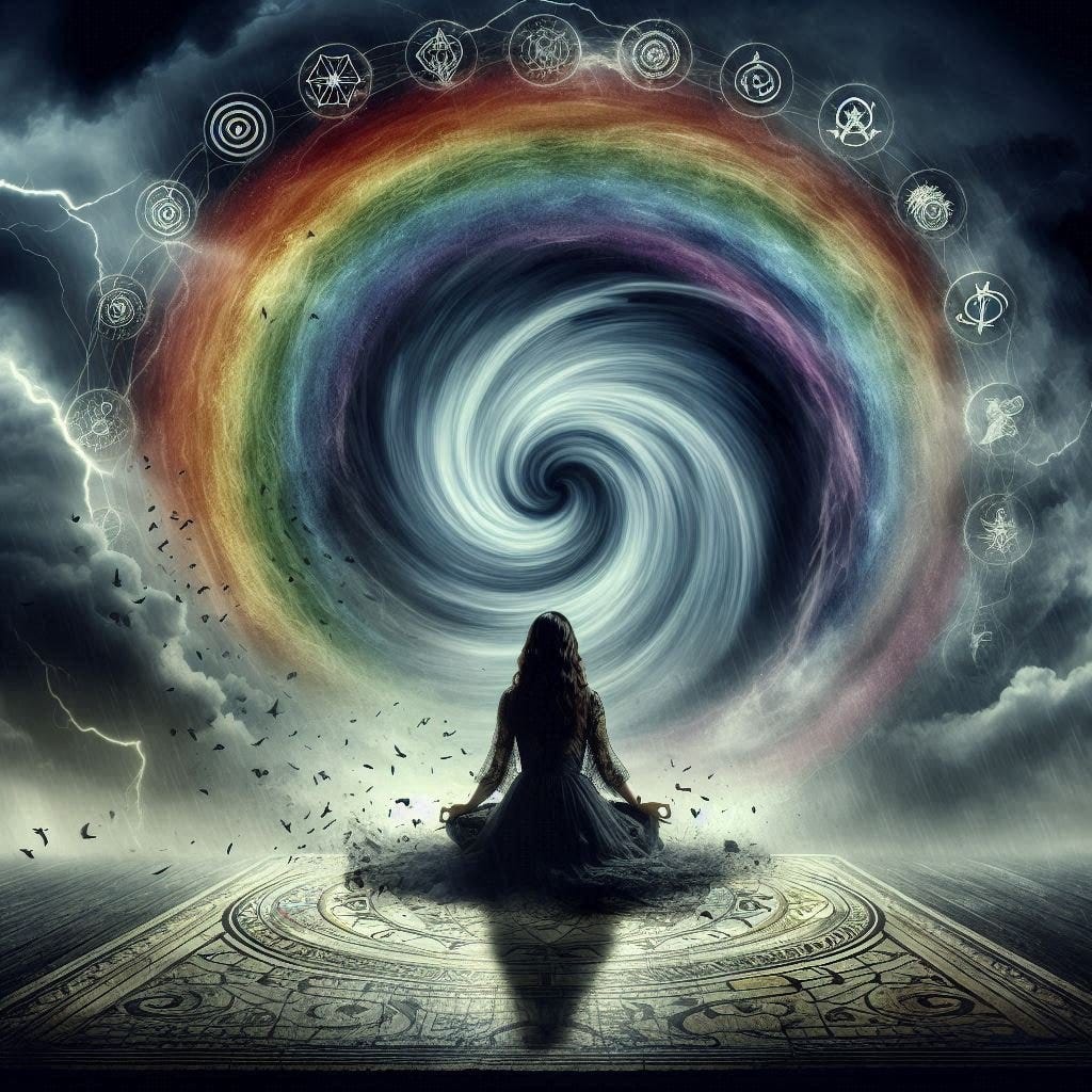 I encountered an ancient Sumerian myth about the Goddess Inanna who descends to the underworld to encounter her “dark sister,” Ereshkigal (for a great analysis on this myth, I recommend Descent to the Goddess, by Sylvia Brinton Perrera). Having a name and description of “Ereshkigal” (the dark intensity I was experiencing), and an understanding of Inanna’s path of descent to her, helped me “mytho-poeticize” the psycho-spiritual tornado I was experiencing. The myth brought vital instructions to life: how to notice Ereshkigal when she has arisen, how to express reverence to her, and what tasks needed to completed or abandoned to allow for her transformative work. Since then, I see mythology as an archetypal goldmine for helping us navigate a variety of experiences, including the most disturbing. The courage to go further, therefore, is not measured by our individual strength or will, but by our surrender to emergent forms of wisdom… even if initially new or “bizarre.”